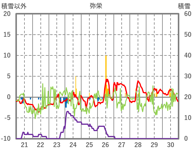 | 日 | 時 | 気温 | 降水 | 風向/風速 | 日照 | 積雪 | 降雪 |