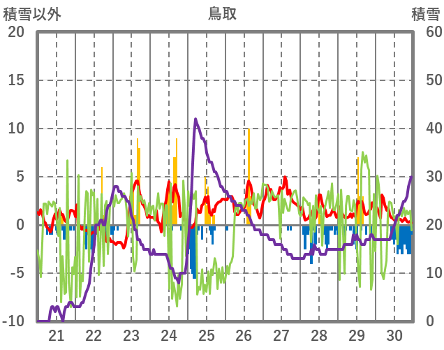 | 日 | 時 | 気温 | 降水 | 風向/風速 | 日照 | 積雪 | 降雪 |
