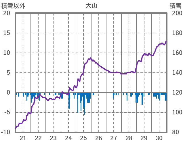 | 日 | 時 | 気温 | 降水 | 風向/風速 | 日照 | 積雪 | 降雪 |