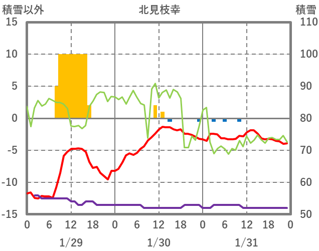 | 日 | 時 | 気温 | 降水 | 風向/風速 | 日照 | 積雪 | 降雪 |