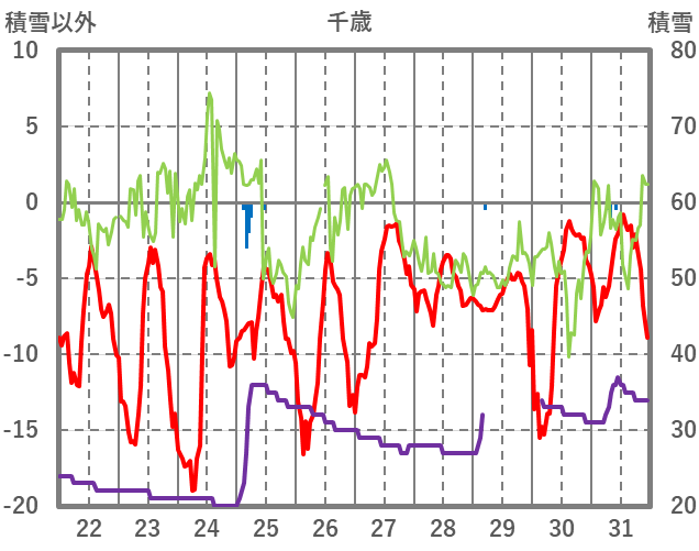| 日 | 時 | 気温 | 降水 | 風向/風速 | 日照 | 積雪 | 降雪 |