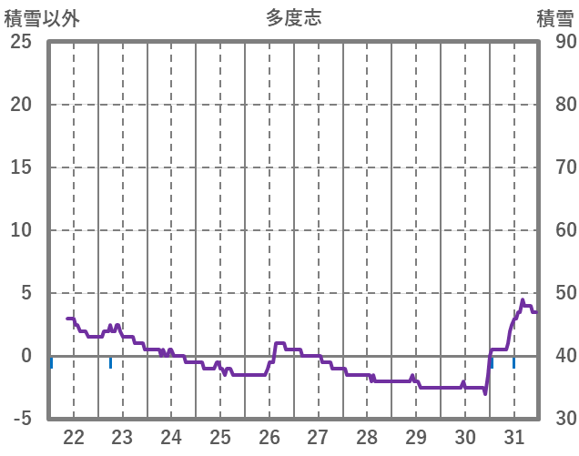 | 日 | 時 | 気温 | 降水 | 風向/風速 | 日照 | 積雪 | 降雪 |