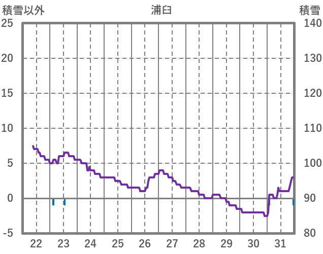 | 日 | 時 | 気温 | 降水 | 風向/風速 | 日照 | 積雪 | 降雪 |