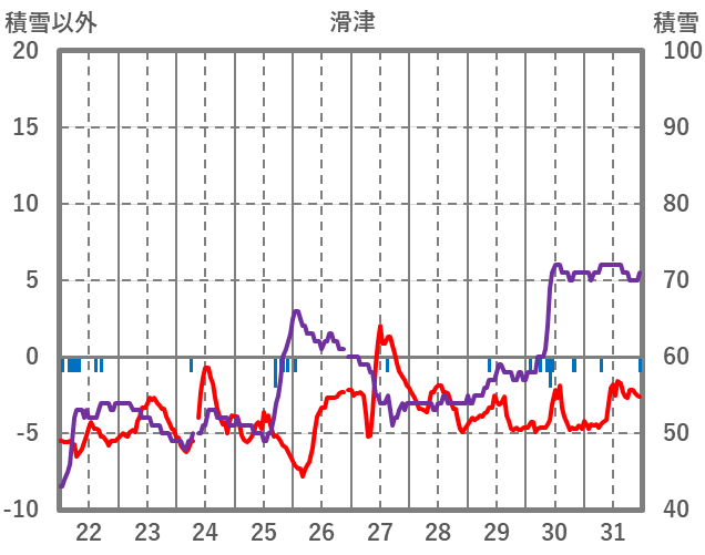 | 日 | 時 | 気温 | 降水 | 風向/風速 | 日照 | 積雪 | 降雪 |