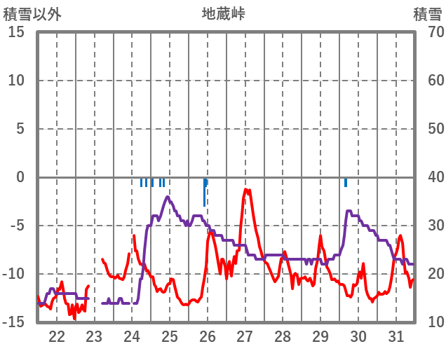 | 日 | 時 | 気温 | 降水 | 風向/風速 | 日照 | 積雪 | 降雪 |