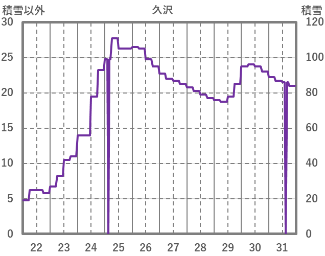| 日 | 時 | 気温 | 降水 | 風向/風速 | 日照 | 積雪 | 降雪 |