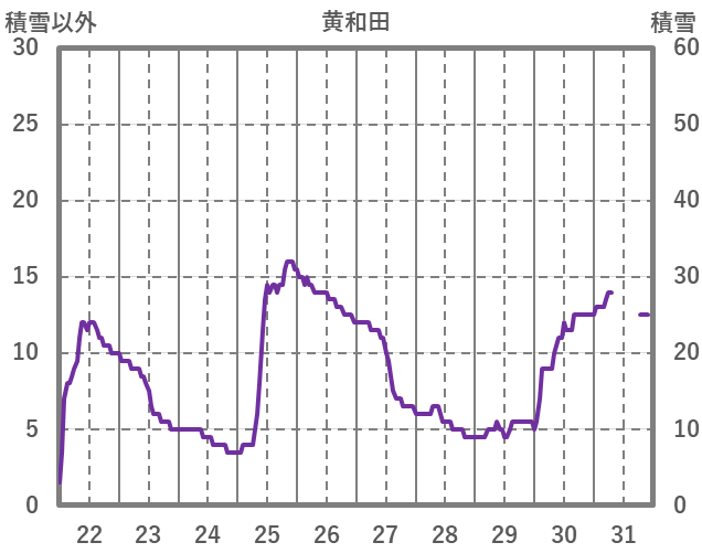 | 日 | 時 | 気温 | 降水 | 風向/風速 | 日照 | 積雪 | 降雪 |