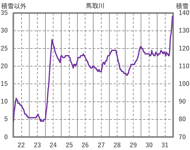 | 日 | 時 | 気温 | 降水 | 風向/風速 | 日照 | 積雪 | 降雪 |