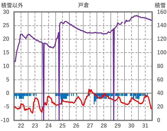 | 日 | 時 | 気温 | 降水 | 風向/風速 | 日照 | 積雪 | 降雪 |