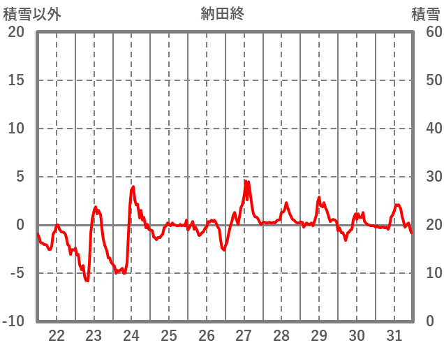 | 日 | 時 | 気温 | 降水 | 風向/風速 | 日照 | 積雪 | 降雪 |
