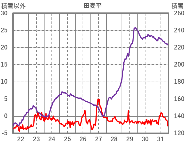 | 日 | 時 | 気温 | 降水 | 風向/風速 | 日照 | 積雪 | 降雪 |