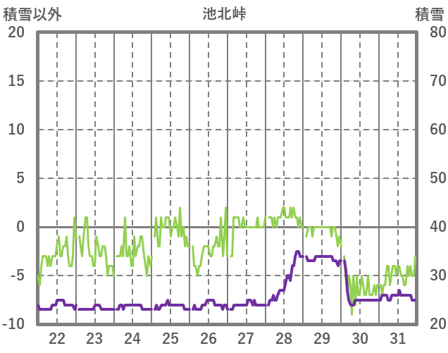 | 日 | 時 | 気温 | 降水 | 風向/風速 | 日照 | 積雪 | 降雪 |