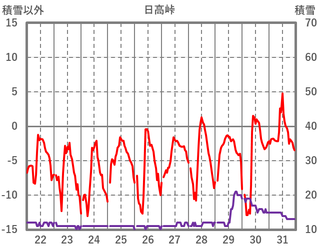 | 日 | 時 | 気温 | 降水 | 風向/風速 | 日照 | 積雪 | 降雪 |