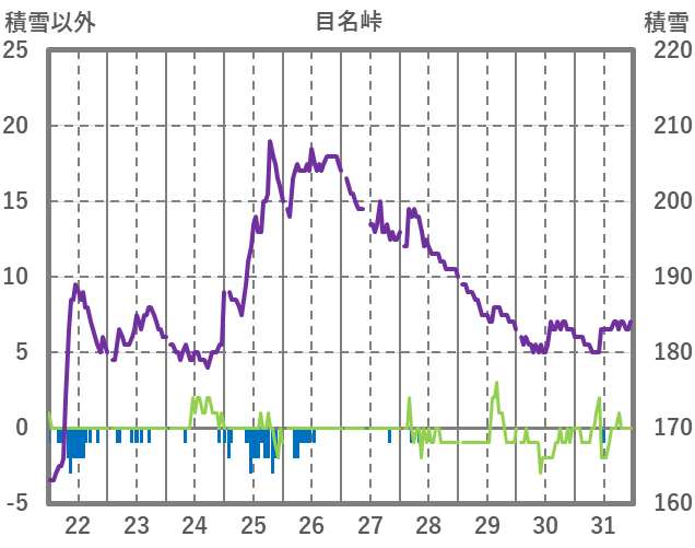 | 日 | 時 | 気温 | 降水 | 風向/風速 | 日照 | 積雪 | 降雪 |