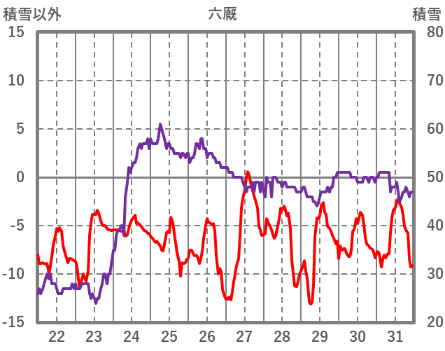 | 日 | 時 | 気温 | 降水 | 風向/風速 | 日照 | 積雪 | 降雪 |