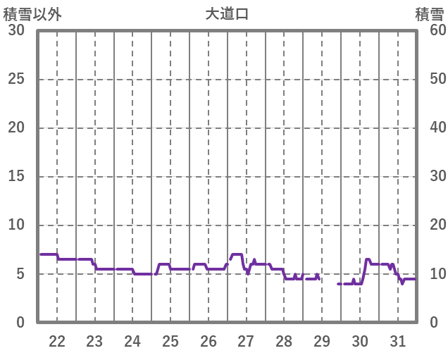 | 日 | 時 | 気温 | 降水 | 風向/風速 | 日照 | 積雪 | 降雪 |