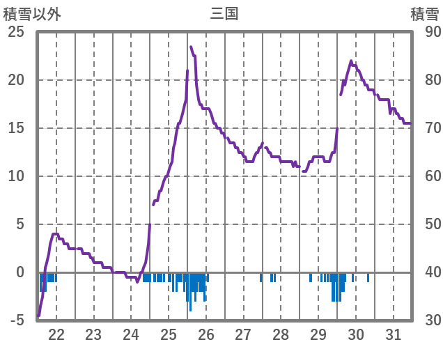 | 日 | 時 | 気温 | 降水 | 風向/風速 | 日照 | 積雪 | 降雪 |