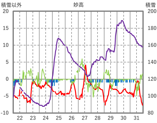 | 日 | 時 | 気温 | 降水 | 風向/風速 | 日照 | 積雪 | 降雪 |