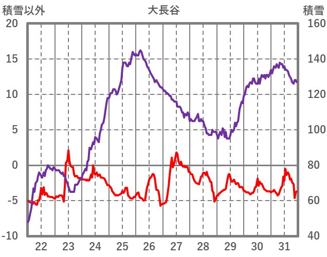 | 日 | 時 | 気温 | 降水 | 風向/風速 | 日照 | 積雪 | 降雪 |