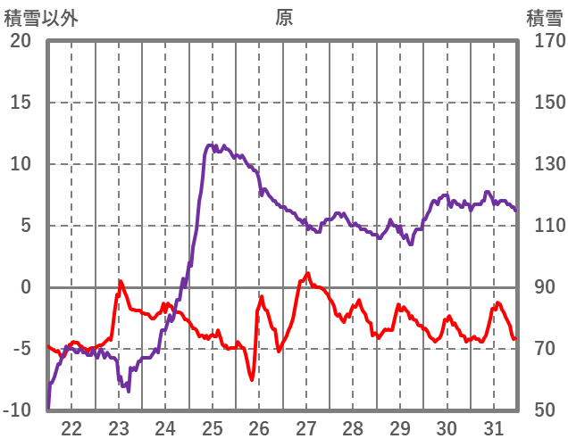 | 日 | 時 | 気温 | 降水 | 風向/風速 | 日照 | 積雪 | 降雪 |