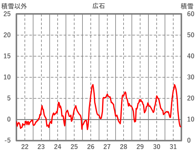 | 日 | 時 | 気温 | 降水 | 風向/風速 | 日照 | 積雪 | 降雪 |