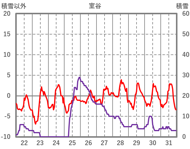 | 日 | 時 | 気温 | 降水 | 風向/風速 | 日照 | 積雪 | 降雪 |