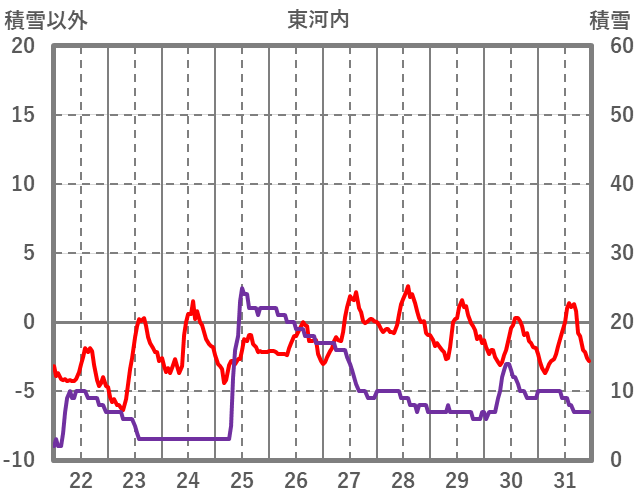 | 日 | 時 | 気温 | 降水 | 風向/風速 | 日照 | 積雪 | 降雪 |
