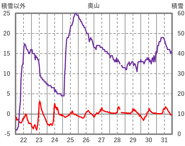 | 日 | 時 | 気温 | 降水 | 風向/風速 | 日照 | 積雪 | 降雪 |