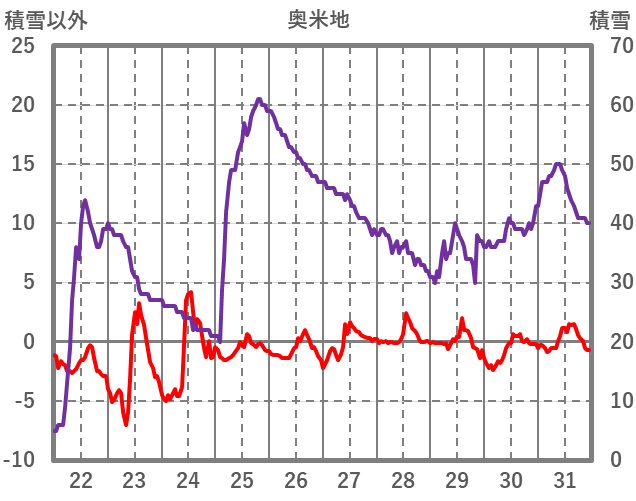 | 日 | 時 | 気温 | 降水 | 風向/風速 | 日照 | 積雪 | 降雪 |