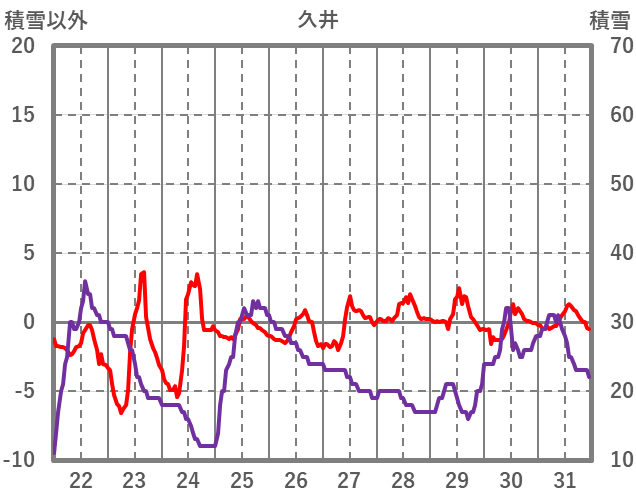 | 日 | 時 | 気温 | 降水 | 風向/風速 | 日照 | 積雪 | 降雪 |
