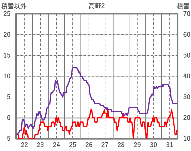 | 日 | 時 | 気温 | 降水 | 風向/風速 | 日照 | 積雪 | 降雪 |