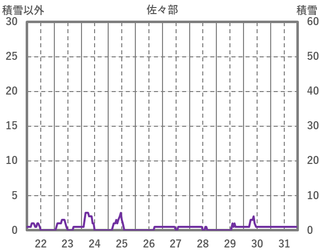 | 日 | 時 | 気温 | 降水 | 風向/風速 | 日照 | 積雪 | 降雪 |