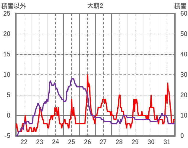 | 日 | 時 | 気温 | 降水 | 風向/風速 | 日照 | 積雪 | 降雪 |