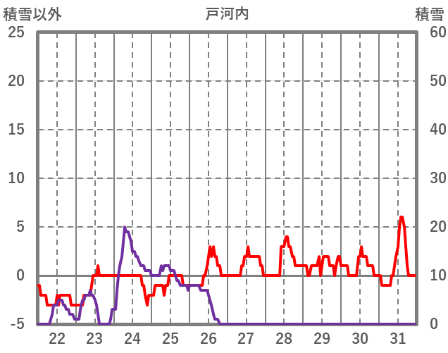 | 日 | 時 | 気温 | 降水 | 風向/風速 | 日照 | 積雪 | 降雪 |