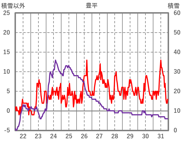 | 日 | 時 | 気温 | 降水 | 風向/風速 | 日照 | 積雪 | 降雪 |