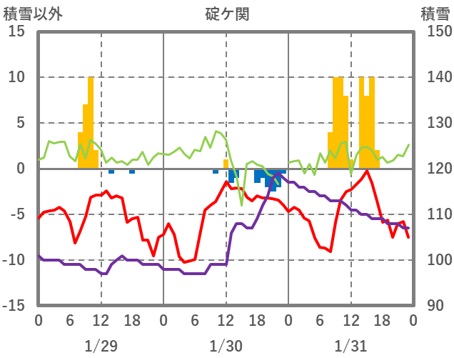 | 日 | 時 | 気温 | 降水 | 風向/風速 | 日照 | 積雪 | 降雪 |