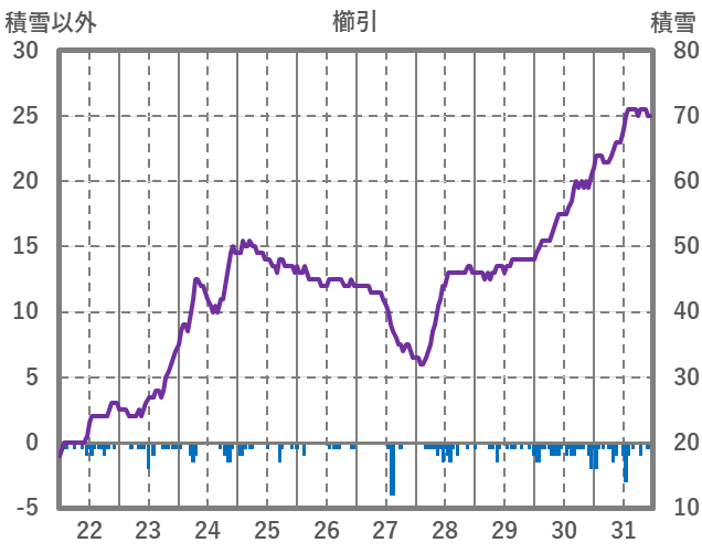 | 日 | 時 | 気温 | 降水 | 風向/風速 | 日照 | 積雪 | 降雪 |