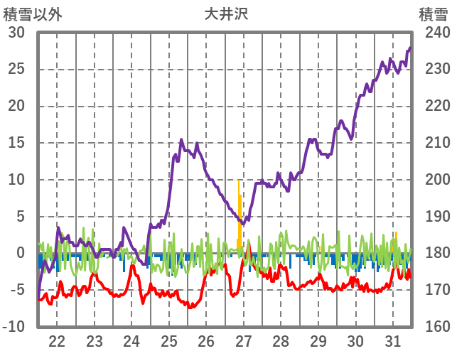 | 日 | 時 | 気温 | 降水 | 風向/風速 | 日照 | 積雪 | 降雪 |
