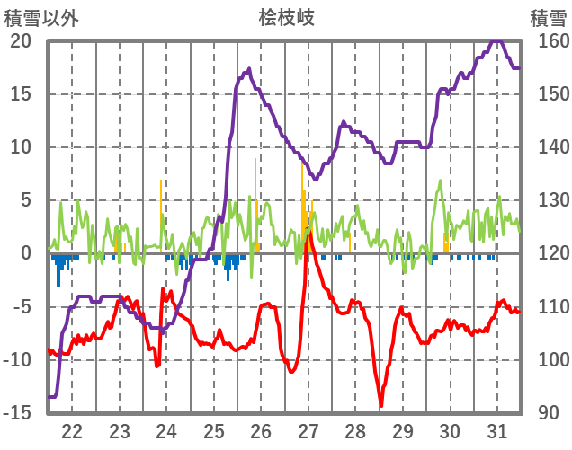 | 日 | 時 | 気温 | 降水 | 風向/風速 | 日照 | 積雪 | 降雪 |