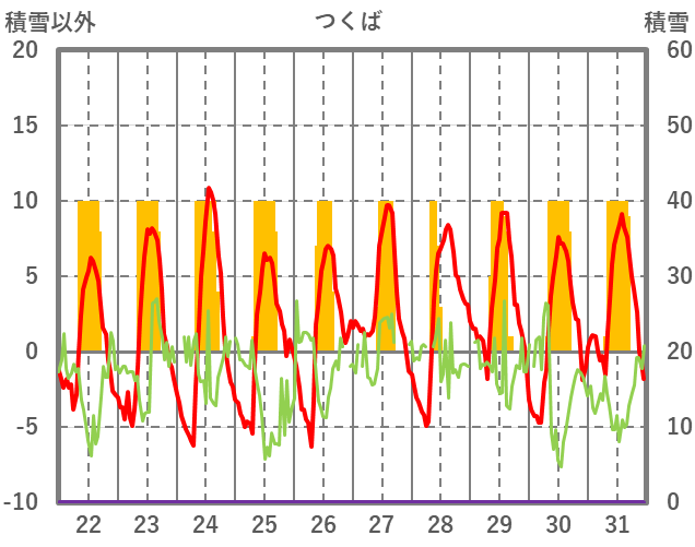 | 日 | 時 | 気温 | 降水 | 風向/風速 | 日照 | 積雪 | 降雪 |