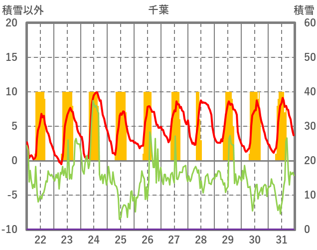 | 日 | 時 | 気温 | 降水 | 風向/風速 | 日照 | 積雪 | 降雪 |