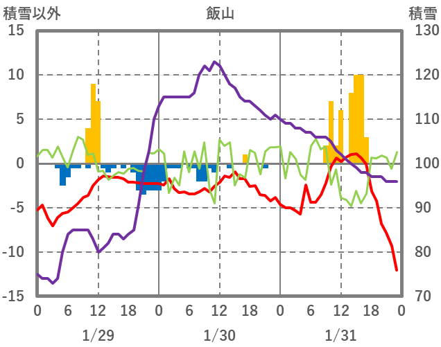 | 日 | 時 | 気温 | 降水 | 風向/風速 | 日照 | 積雪 | 降雪 |