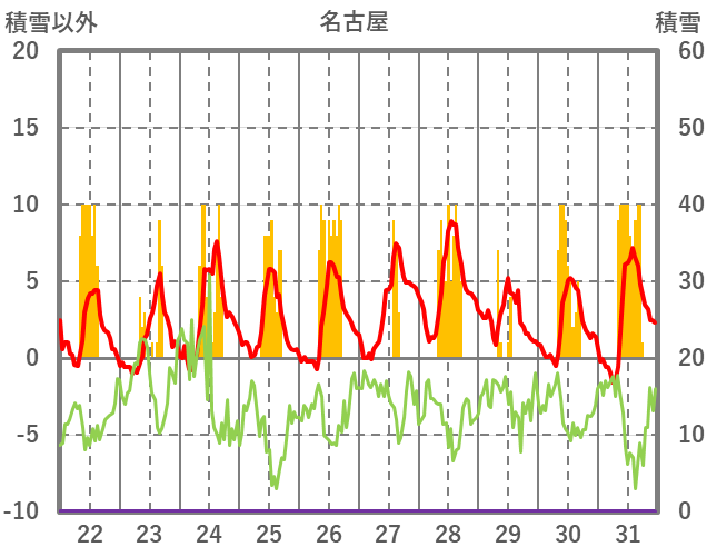 | 日 | 時 | 気温 | 降水 | 風向/風速 | 日照 | 積雪 | 降雪 |