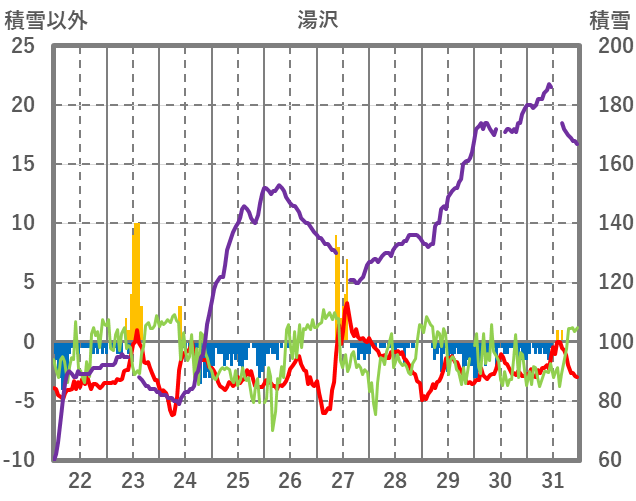| 日 | 時 | 気温 | 降水 | 風向/風速 | 日照 | 積雪 | 降雪 |