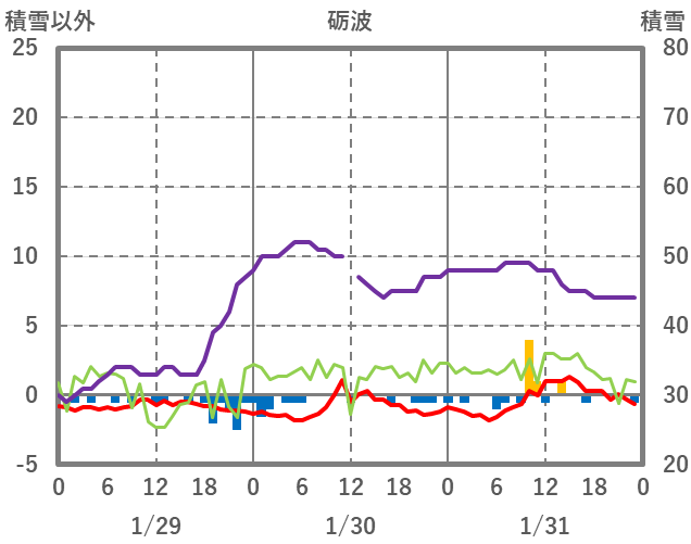 | 日 | 時 | 気温 | 降水 | 風向/風速 | 日照 | 積雪 | 降雪 |