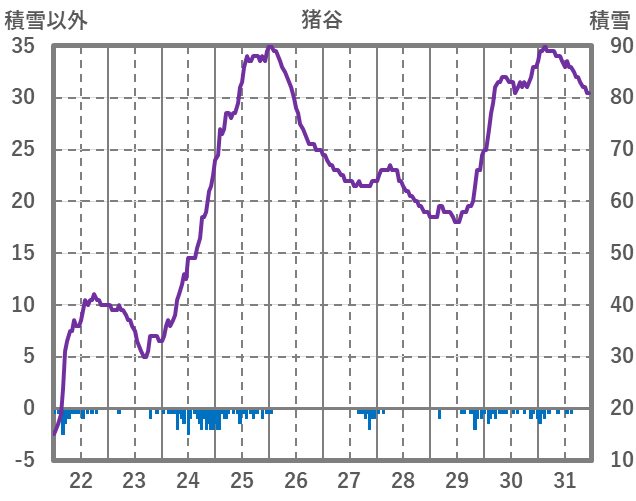 | 日 | 時 | 気温 | 降水 | 風向/風速 | 日照 | 積雪 | 降雪 |