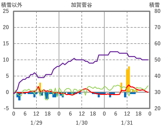 | 日 | 時 | 気温 | 降水 | 風向/風速 | 日照 | 積雪 | 降雪 |