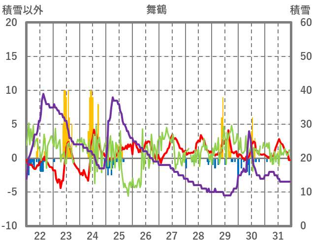 | 日 | 時 | 気温 | 降水 | 風向/風速 | 日照 | 積雪 | 降雪 |