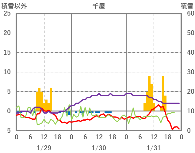 | 日 | 時 | 気温 | 降水 | 風向/風速 | 日照 | 積雪 | 降雪 |