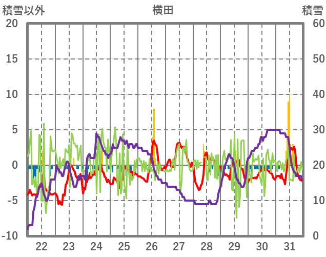 | 日 | 時 | 気温 | 降水 | 風向/風速 | 日照 | 積雪 | 降雪 |